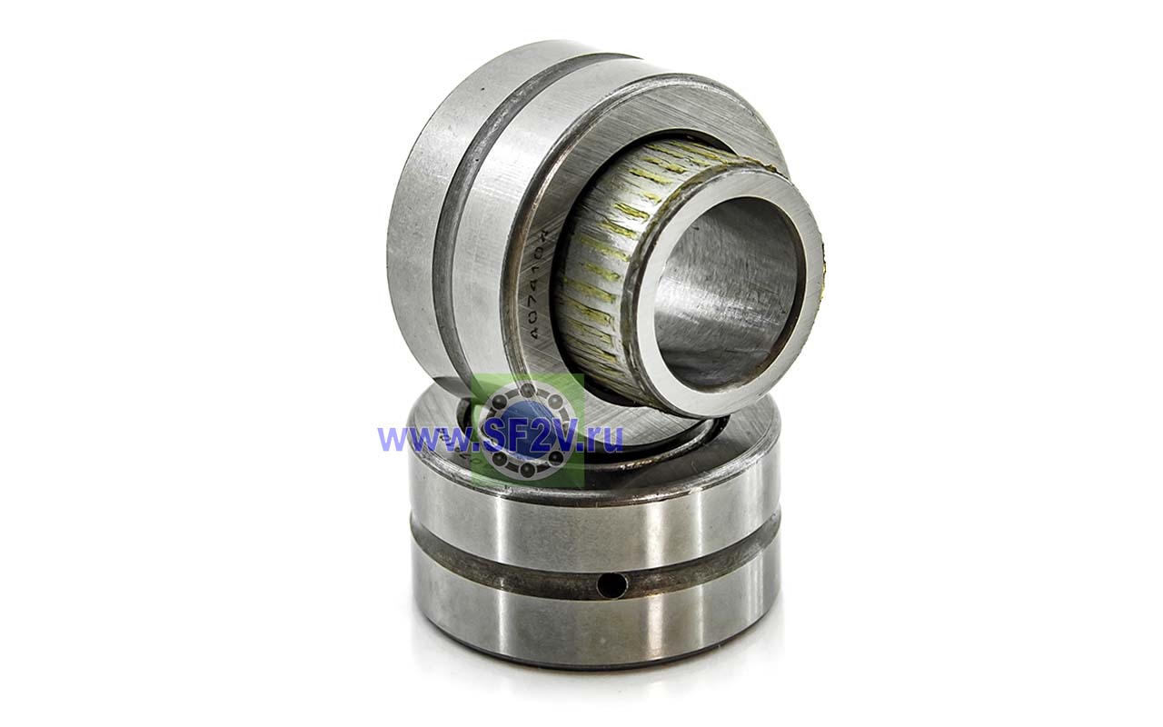 Подшипник игольчатый, с сепаратором, с внутренним кольцом в сборе. По наружному кольцу проходит проточка для подачи смазки. Внутреннее кольцо подвижно в обе стороны.