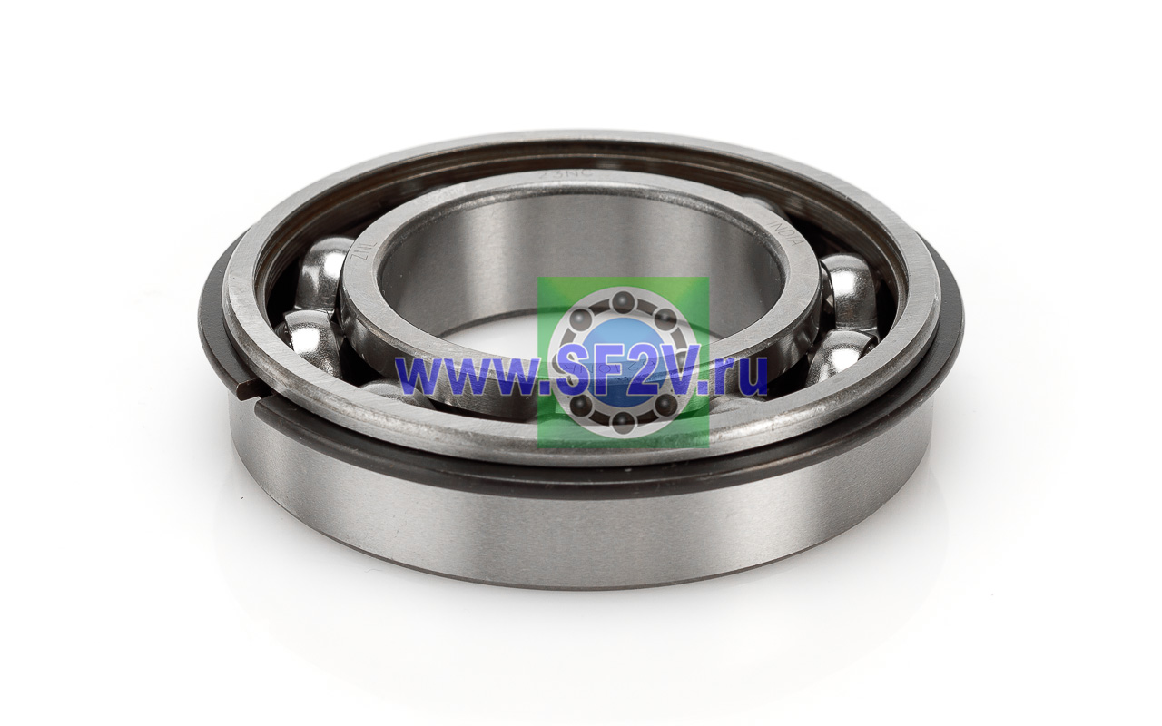 Радиальный шарикоподшипник с проточкой и стопорным кольцом на внешнем кольце. Стопорное кольцо служит для осевой фиксации подшипника, значительно упрощает монтаж, демонтаж, механическую обработку отверстий в корпусе и вала.