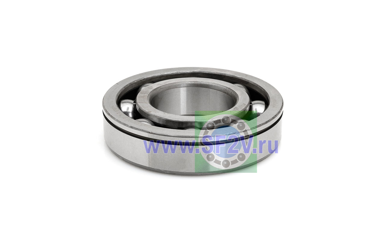 Радиальный шарикоподшипник с проточкой для стопорного кольца на наружной обойме. Стопорное кольцо служит для осевой фиксации подшипника, значительно упрощает монтаж, демонтаж, механическую обработку отверстий в корпусе и вала.