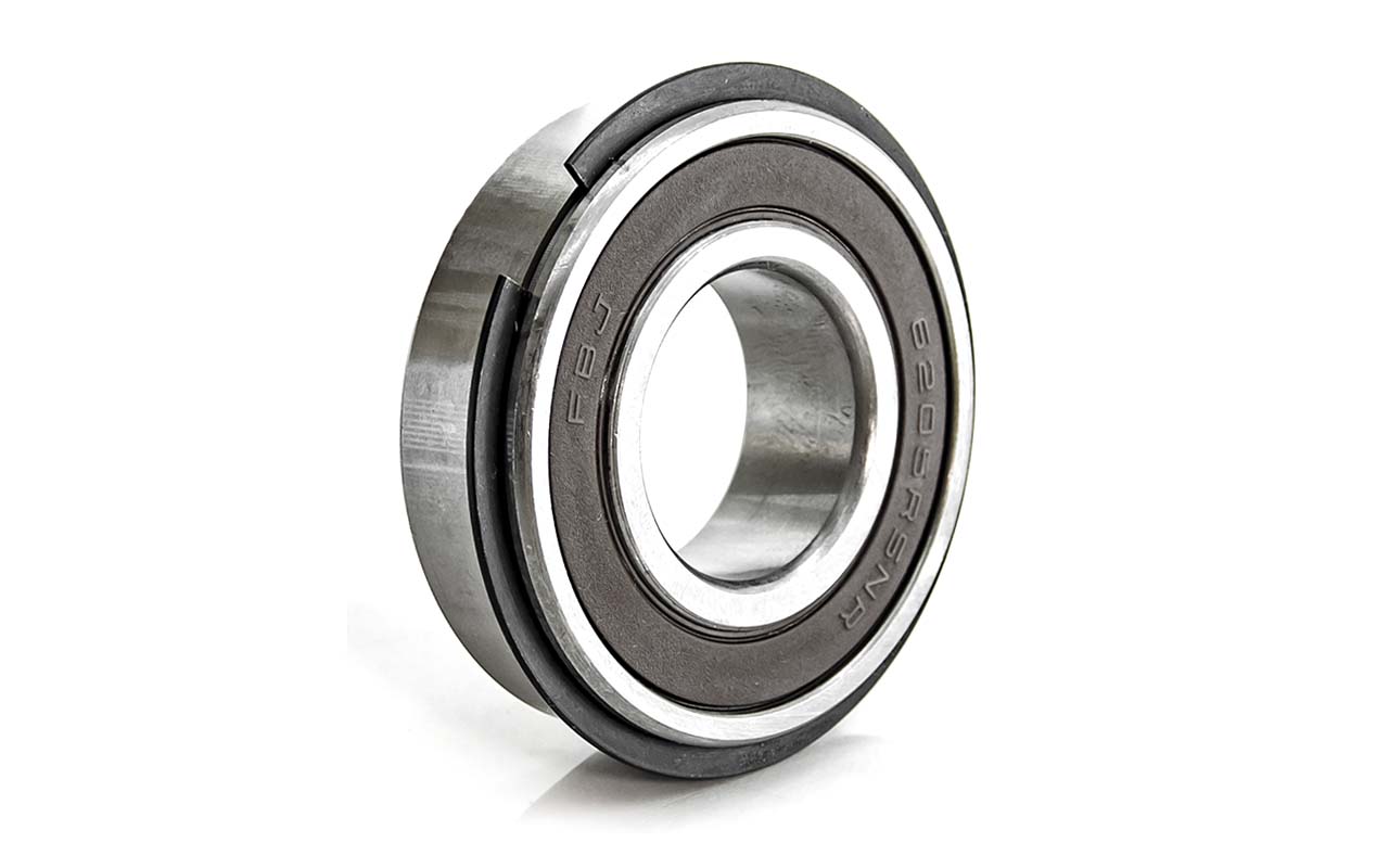 Радиальный шарикоподшипник с проточкой и стопорным кольцом на внешнем кольце. Стопорное кольцо служит для осевой фиксации подшипника, значительно упрощает монтаж, демонтаж, механическую обработку отверстий в корпусе и вала.