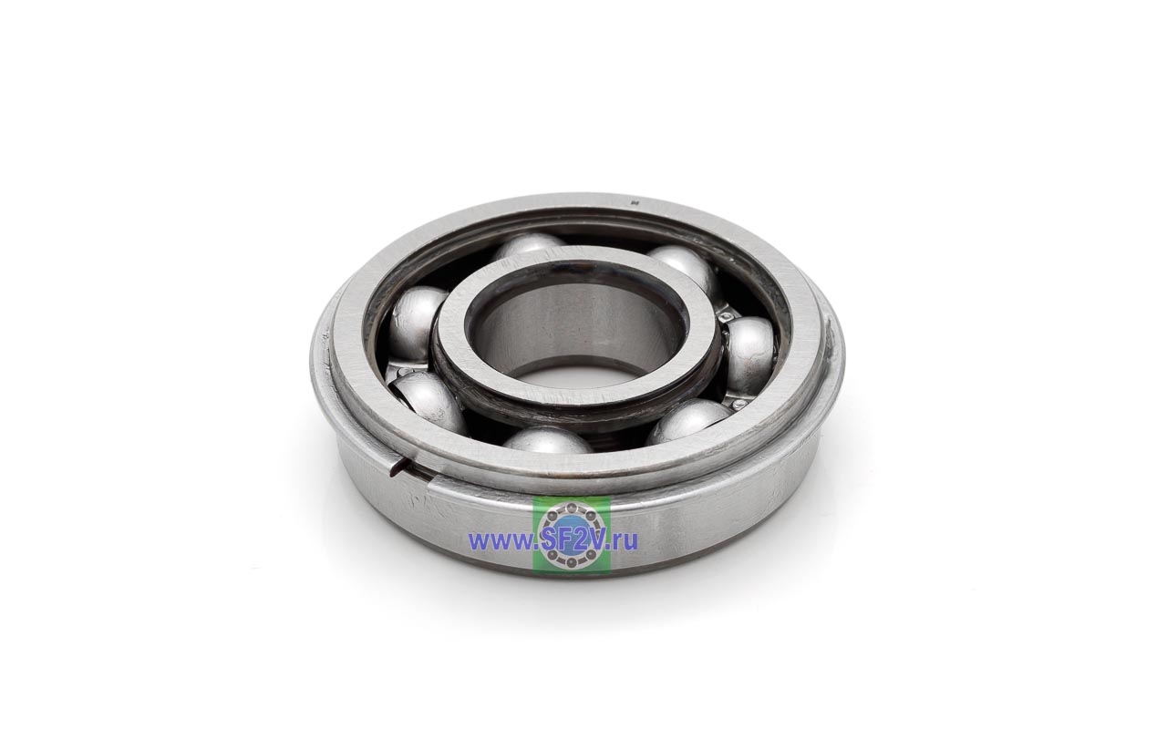 Радиальный шарикоподшипник с проточкой и стопорным кольцом на внешнем кольце. Стопорное кольцо служит для осевой фиксации подшипника, значительно упрощает монтаж, демонтаж, механическую обработку отверстий в корпусе и вала. Однорядный с металлическими защитными шайбами, предназначен для эксплуатации в подшипниковых узлах с умеренным уровнем загрязнения.