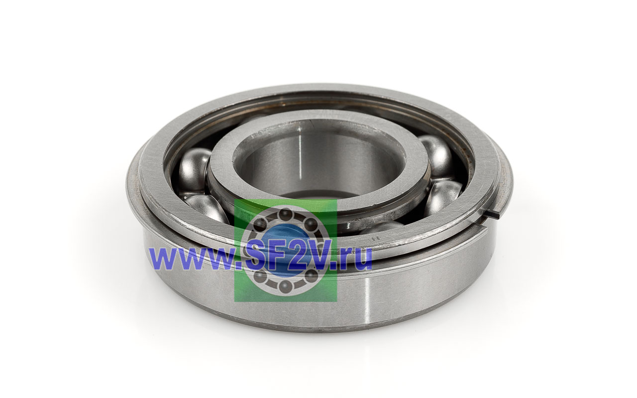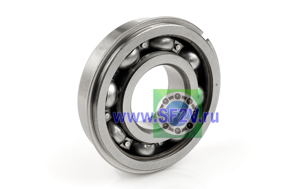 Радиальный шарикоподшипник с проточкой и стопорным кольцом на внешнем кольце. Стопорное кольцо служит для осевой фиксации подшипника, значительно упрощает монтаж, демонтаж, механическую обработку отверстий в корпусе и вала. Однорядный с металлическими защитными шайбами, предназначен для эксплуатации в подшипниковых узлах с умеренным уровнем загрязнения.