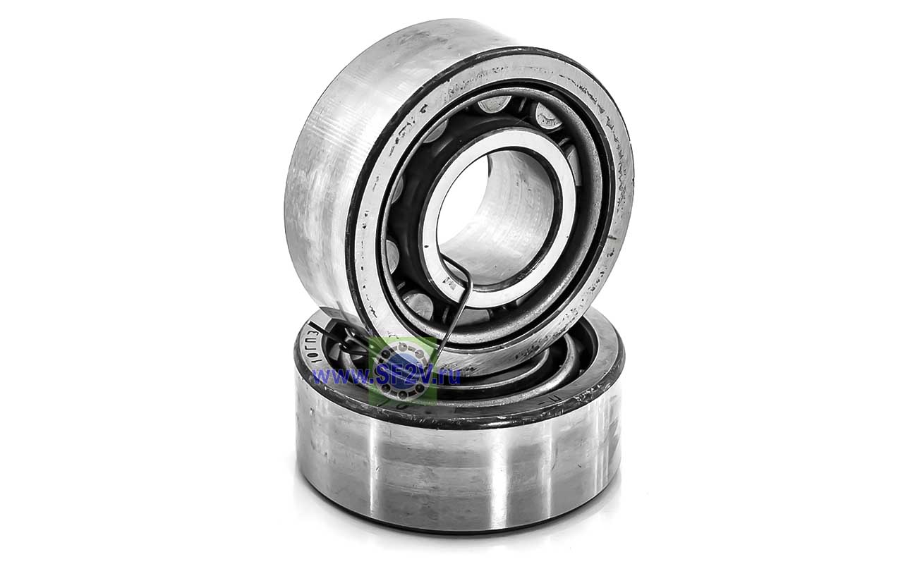 Однорядные радиальные роликовые подшипники типа NU с двумя бортиками на внешнем кольце и внутреннем без бортиков, применяется для подшипниковых узлов с небольшим осевым смещением в обе стороны. Увеличенный радиальный(тепловой) зазор необходим в условиях прессовой посадки обоих колец, недостаточном охлаждении подшипникового узла, резких и частых сменах режимов работы подшипника (скорость, температура).