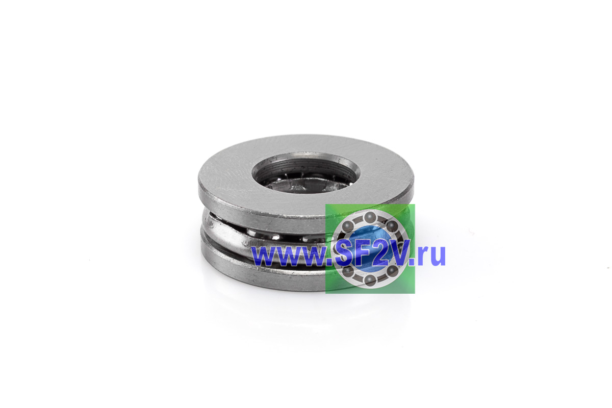 Упорный шарикоподшипник одинарный разборный. Воспринимают только осевые нагрузки и жестко фиксируют положение вала. Применимы для опор тихоходных валов, задвижек, крюков мостовых кранов, поворотных и нажимных устройств и т.д. Упорные шарикоподшипники предназначены исключительно для осевых нагрузок. Как правило, такие подшипники используются как опора вала в продольном направлении. Упорные шарикоподшипники могут быть одинарными и двойными.