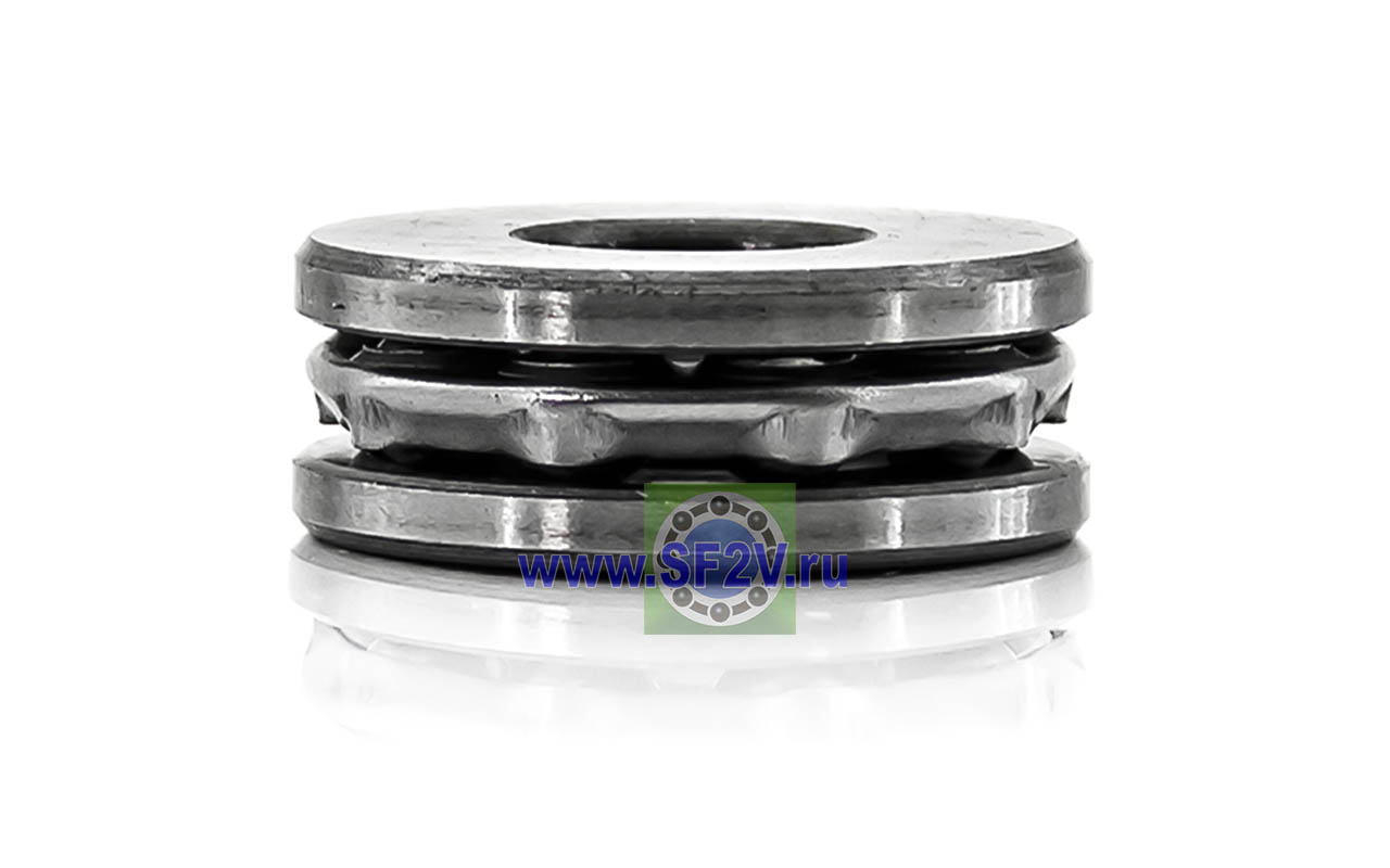 Упорный шарикоподшипник одинарный разборный. Воспринимают только осевые нагрузки и жестко фиксируют положение вала. Применимы для опор тихоходных валов, задвижек, крюков мостовых кранов, поворотных и нажимных устройств и т.д.