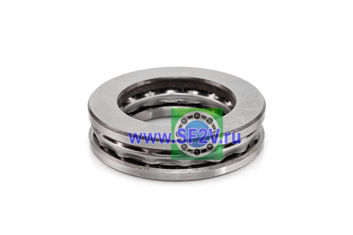 Упорный шарикоподшипник одинарный разборный. Воспринимают только осевые нагрузки и жестко фиксируют положение вала. Применимы для опор тихоходных валов, задвижек, крюков мостовых кранов, поворотных и нажимных устройств и т.д.