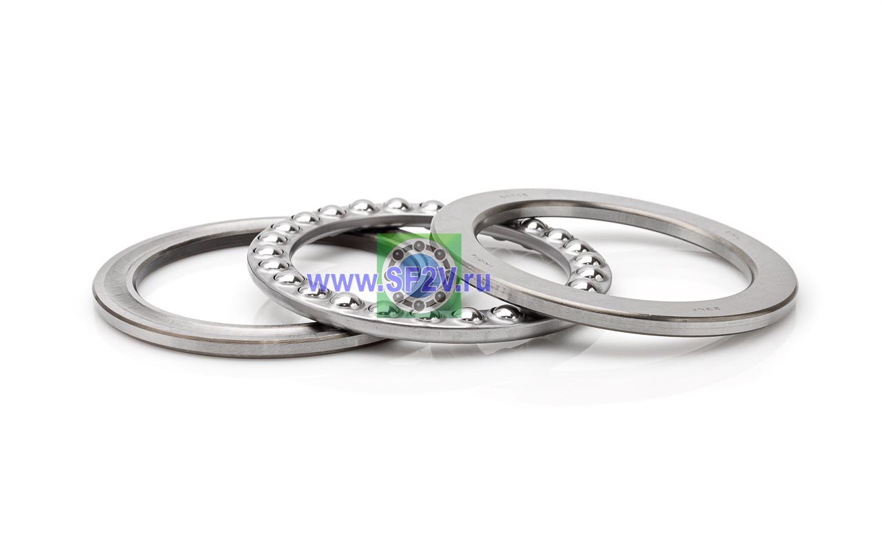 Упорный шарикоподшипник одинарный разборный. Воспринимают только осевые нагрузки и жестко фиксируют положение вала. Применимы для опор тихоходных валов, задвижек, крюков мостовых кранов, поворотных и нажимных устройств и т.д.