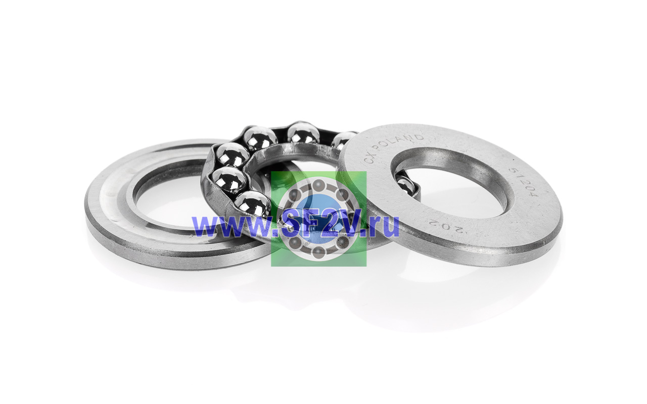 Упорный шарикоподшипник одинарный разборный. Воспринимают только осевые нагрузки и жестко фиксируют положение вала. Применимы для опор тихоходных валов, задвижек, крюков мостовых кранов, поворотных и нажимных устройств и т.д.