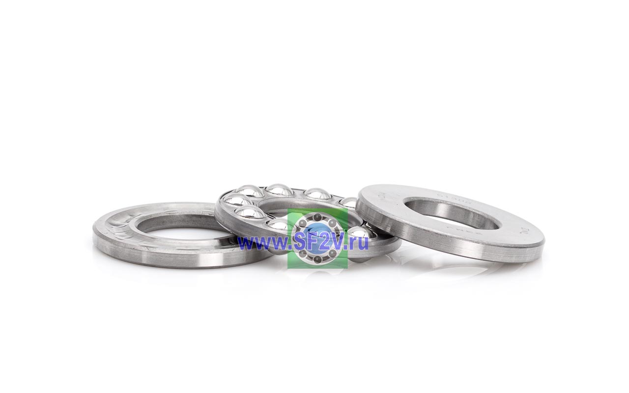 Упорный шарикоподшипник одинарный разборный. Воспринимают только осевые нагрузки и жестко фиксируют положение вала. Применимы для опор тихоходных валов, задвижек, крюков мостовых кранов, поворотных и нажимных устройств и т.д.