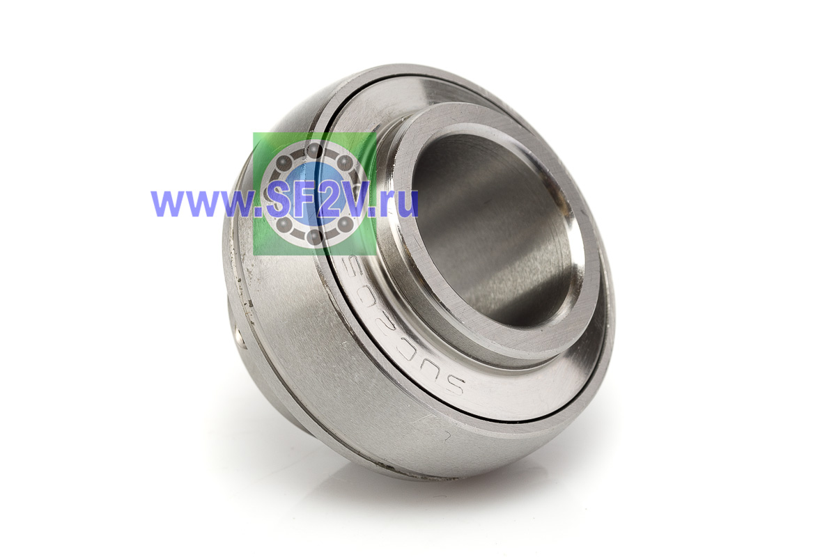 Шариковый подшипник, корпусной, закрытый с 2-х сторон. Крепление на вал с помощью затяжных болтов на внутреннем кольце. Подшипник типа UC – это корпусный подшипник, который используется для установки в корпусные подшипниковые узлы всех типов. Подшипник имеет сферическую наружную обойму, а корпус - сферическое посадочное отверстие. Такая конструкция позволяет подшипнику слегка перемещаться в корпусе, за счет чего компенсируется перекос вала или неточность монтажа. Крепление подшипника на валу осуществляется при помощи стопорных винтов. Кроме того, у такого подшипника есть специальные отверстия для замены смазки. Подшипники типа UC применяются в основном в качестве опор коротких валов, а также для тех мест установки, где возможно лишь небольшое тепловое линейное расширение. Осевые зазоры подшипника компенсируют небольшие удлинения вала. Подшипники типа UC применяются при нормальных нагрузках, низких или средних скоростях вращения.