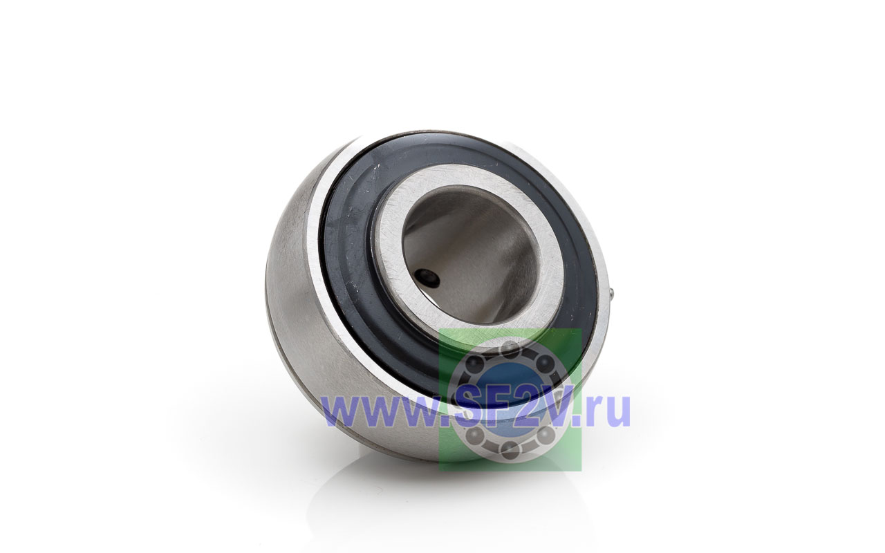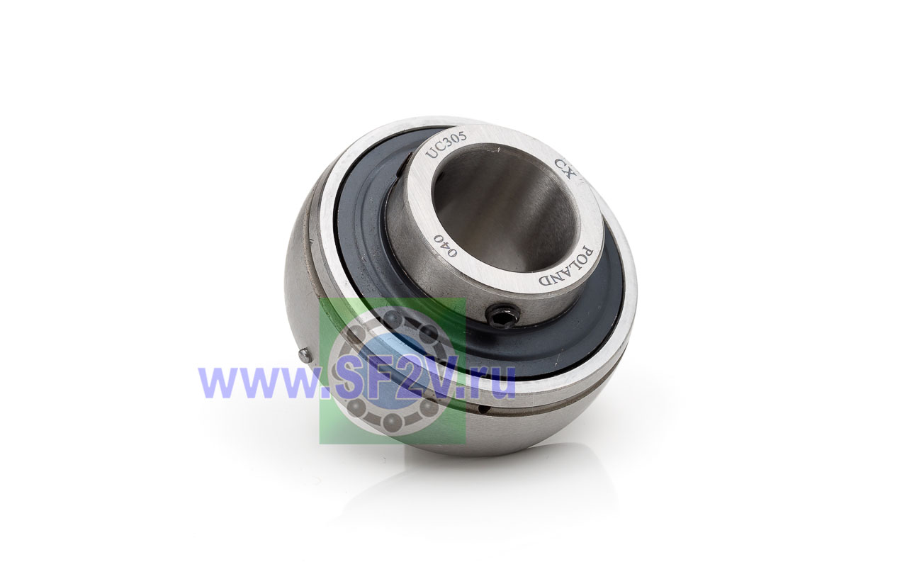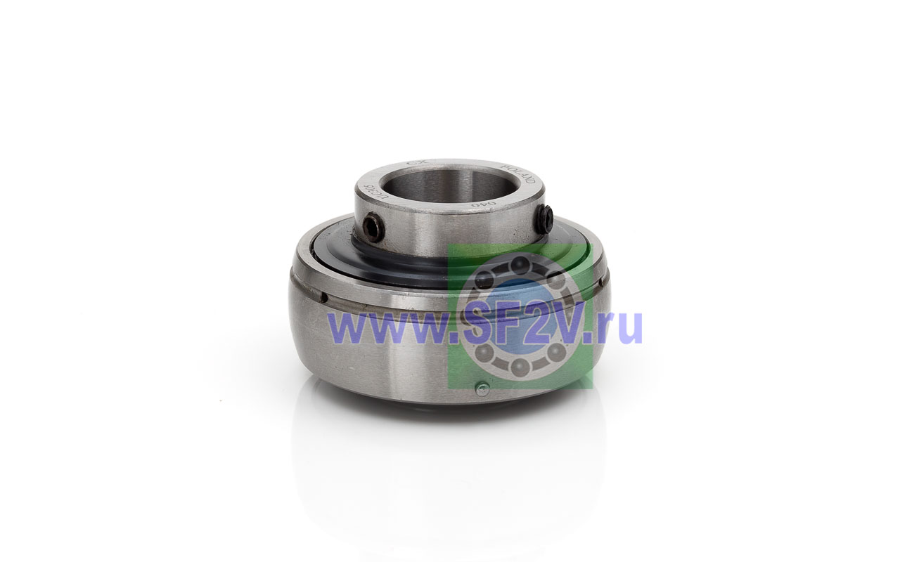 Шариковый подшипник, корпусной, закрытый с 2-х сторон. Крепление на вал с помощью затяжных болтов на внутреннем кольце. Подшипник типа UC – это корпусный подшипник, который используется для установки в корпусные подшипниковые узлы всех типов. Подшипник имеет сферическую наружную обойму, а корпус - сферическое посадочное отверстие. Такая конструкция позволяет подшипнику слегка перемещаться в корпусе, за счет чего компенсируется перекос вала или неточность монтажа. Крепление подшипника на валу осуществляется при помощи стопорных винтов. Кроме того, у такого подшипника есть специальные отверстия для замены смазки. Подшипники типа UC применяются в основном в качестве опор коротких валов, а также для тех мест установки, где возможно лишь небольшое тепловое линейное расширение. Осевые зазоры подшипника компенсируют небольшие удлинения вала. Подшипники типа UC применяются при нормальных нагрузках, низких или средних скоростях вращения.
